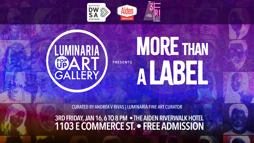 Curated by Andrea V Rivas, Luminaria Fine Art Curator, the exhibit unites local artists including: Angelica Mayorga, Ashley Perez, Diego Perez, James Perez, Pearl Salinas, Southernsity, Willy Prentiss, Yamin Li, and more.